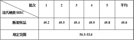 取斷口相鄰部位進行硬度測試,結果見表1。根據標準JIS G3560-1994,此失效彈簧直徑約5 mm,對應拉伸強度1760-1910 N/mm2,換算為洛氏硬度為50.5-53.0 HRC。結果顯示此失效件處于標準要求硬度范圍的下限。