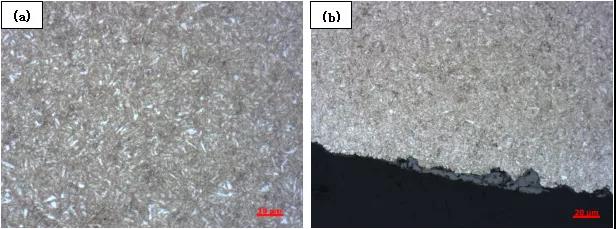 圖6 縱截面截面基體組織及外彎處小裂紋缺陷(500X)