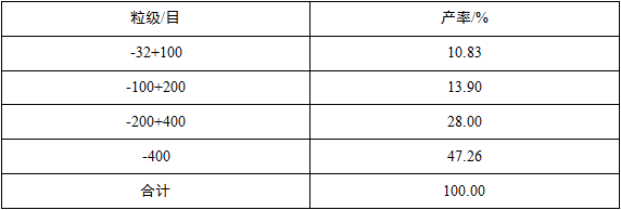 根據《巖金礦地質勘察規范》,金的質量分數大于80%為自然金。該尾礦金礦物能譜分析結果見表4,由表4可知該尾礦中金礦物基本不含雜質,為自然金,金成色高,達994.8‰。