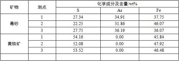 表3 毒砂與黃鐵礦化學成分能譜檢測結果