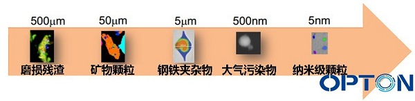 檢測汽車引擎磨損后所余殘渣,得到顆粒尺寸及成分分布情況,說明各部件磨損情況,據此判斷零件更換周期等