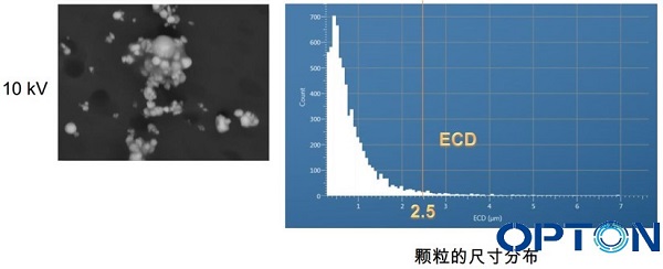 顆粒物分析軟件,針對各種灰度與基體不同的顆粒物進行分析及統計,顆粒物尺度可至納米級別。