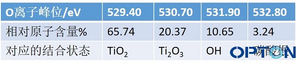 例:玻璃表面二氧化鈦涂層O元素不同離子價(jià)態(tài)比例
