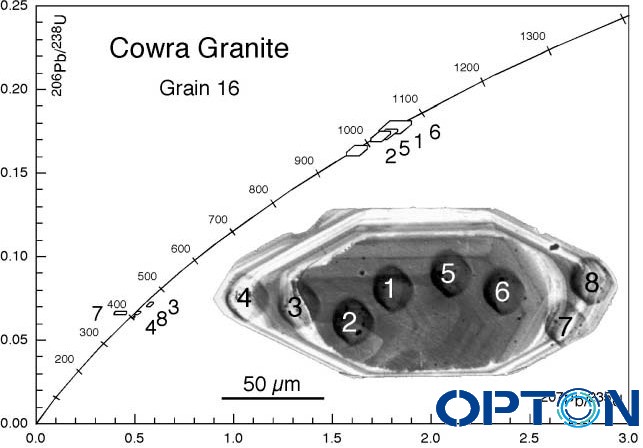鋯石斷年 通過切片拋光制樣、Cl定位、TOF-SIMS 同位素測定,對鋯石進行年代斷定