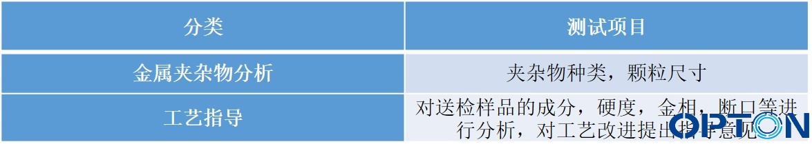 金屬解決方案-測(cè)試項(xiàng)目匯總