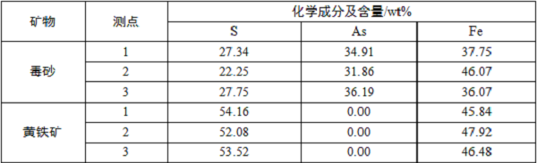 表3 毒砂與黃鐵礦化學成分能譜檢測結果