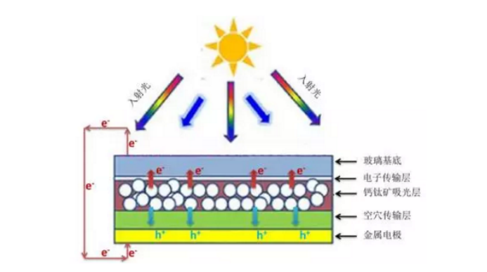 圖1 鈣鈦礦太陽能電池的構(gòu)造與運(yùn)行機(jī)理示意圖