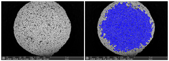 圖4:一次顆粒團聚形成的二次球顆粒識別