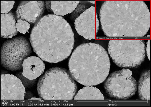 圖4 鋰離子電池三元正極材料的粉末顆粒截面的通道效應(yīng)襯度像