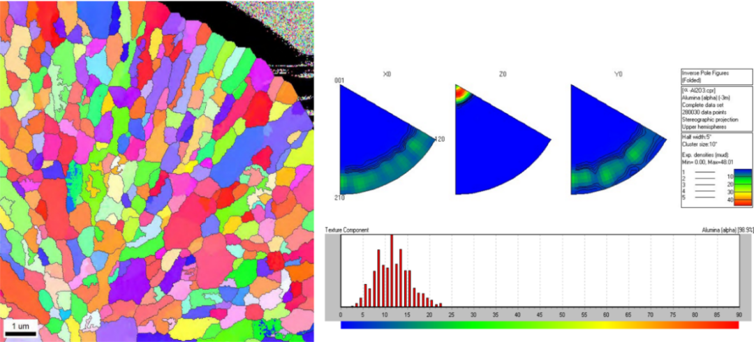 圖3:經過制樣,還可應用EBSD對內部晶粒取向進行表征,觀察其內部柱狀晶的排列與取向