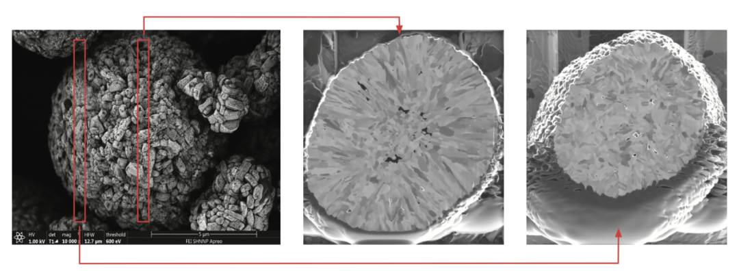 然而僅對顆粒表面的觀察并不全面,顆粒內部的晶體取向,孔隙分布等狀態,對電池的快充性能與能量密度也十分重要。