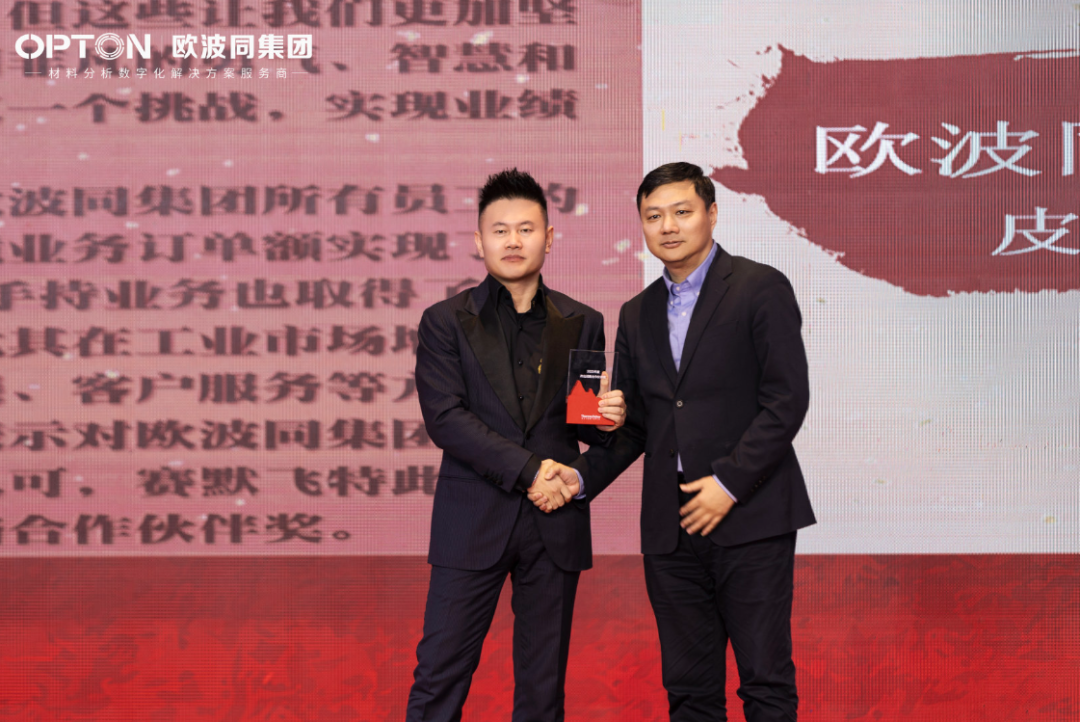 時光荏苒,三年時光如白駒過隙。2023年,在歐波同集團所有員工的努力拼搏下,電鏡業務訂單額實現連年業績增長;手持光譜儀業務也取得了終端市場的增長,尤其在工業市場增幅巨大,并在行業拓展、客戶服務等方面更上一層樓。賽默飛特此為皮曉宇董事長頒發2023年度杰出戰略合作伙伴獎項,以示對歐波同集團2023年業績和合作的認可。