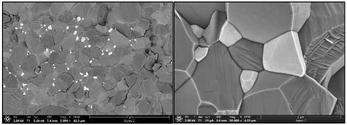 圖3:燒結(jié)成型的AlN陶瓷微觀結(jié)構(gòu)(其中白色顆粒為燒結(jié)助劑Y2O3)