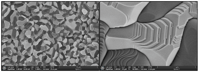 圖4中的SrTiO3陶瓷晶粒取向通過掃描電鏡的背散射探測器清晰呈現(xiàn)出來,晶粒之間沒有較大的氣孔存在,并且表面生長的臺階清晰可見。