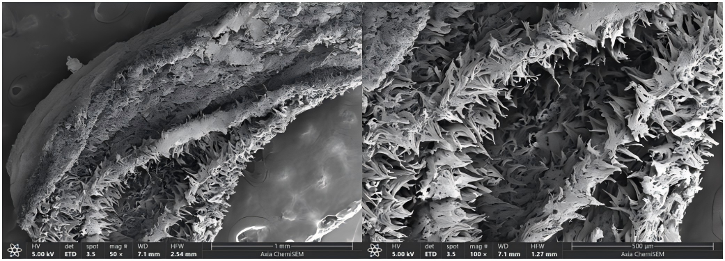 為了更好地觀測(cè)各種食品在微觀下的形態(tài)結(jié)構(gòu),本文采用賽默飛Axia ChemiSEM全新智能型鎢燈絲掃描電鏡進(jìn)行拍攝。Axia ChemiSEM具備操作方便,適用人群廣泛的特點(diǎn)。采用全中文操作界面,日常操作無(wú)需光闌合軸,內(nèi)置的用戶使用指南方便任何人員進(jìn)行操作,大大降低了設(shè)備的操控難度。不僅如此,Axia的高穩(wěn)定樣品倉(cāng)設(shè)計(jì),還可以容納大而重的樣品。同時(shí)標(biāo)配5種探測(cè)器,完善的探測(cè)系統(tǒng)和直觀的導(dǎo)航系統(tǒng),可幫助用戶快捷、全面的掌握樣品信息。