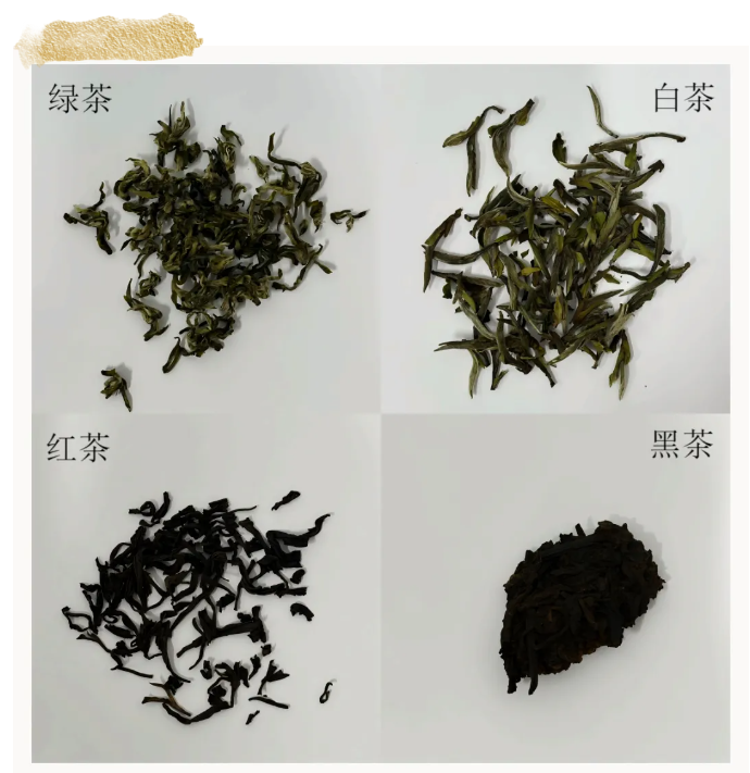 選擇四種茶葉作為觀察樣品:綠茶、白茶、紅茶、黑茶