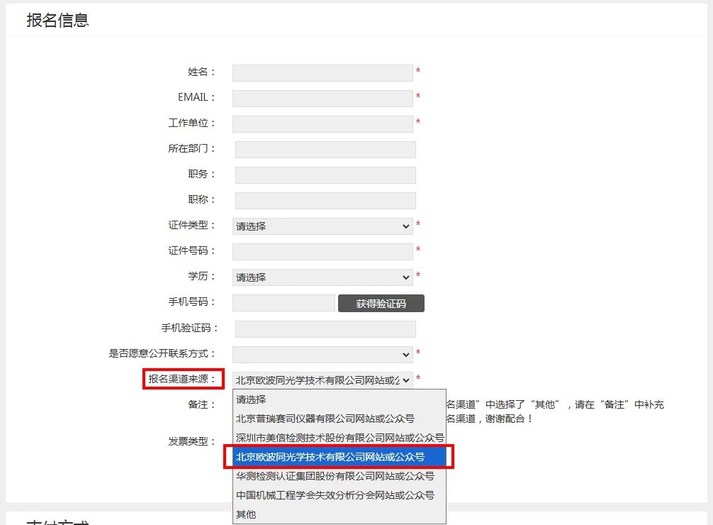 第三步:填寫報名信息,報名渠道來源請選擇“北京歐波同光學技術有限公司網(wǎng)站或公眾號”。