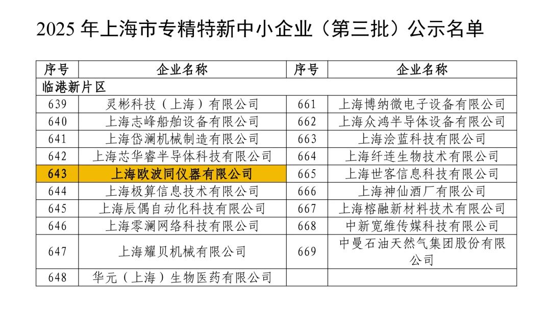 上海歐波同憑借突出的專業(yè)化發(fā)展水平、精細(xì)化管理能力與持續(xù)技術(shù)創(chuàng)新活力,成功獲批2025年度上海市“專精特新”中小企業(yè),是對企業(yè)創(chuàng)新實力、發(fā)展路徑與細(xì)分領(lǐng)域核心競爭力的權(quán)威背書。