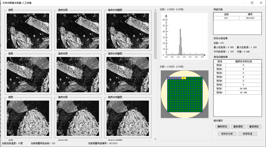 客戶自動檢測反射率同時,軟件會自動保存測試圖片(標樣+煤樣圖片),此圖片可以支持脫機復檢,在其他電腦上,用煤巖軟件可以打開圖片完成實驗分析,脫硬件的限制。