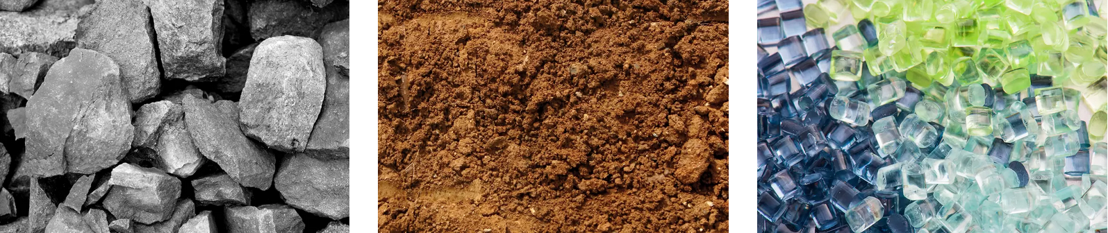 生物量, 建筑材料, 煤/焦炭, fuels, 油, 礦石, 植物原料, 塑料, 橡膠, 土壤, 煤煙, 煙草, 廢料, ...