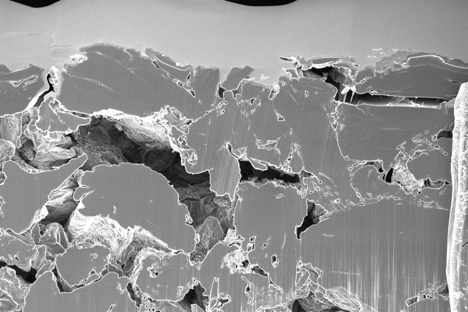 下面兩圖分別對比了鋰金屬和滿充石墨負極樣品在采用CleanConnect系統保護和在空氣暴露后的形貌,結果表明CleanConnect有效保護了樣品免受空氣/水分污染,從而幫助研究者獲取本真形貌結構信息,實現對樣品更深入的分析研究。